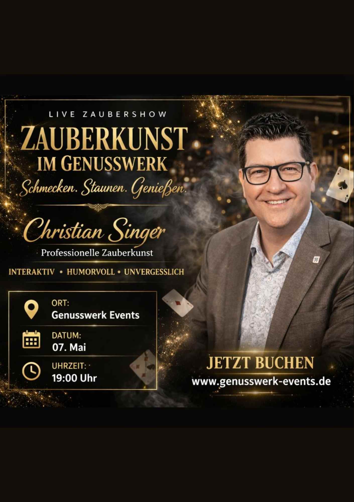 Starten Sie den Abend mit einem prickelnden Aperitif und feinem Fingerfood – leicht, raffiniert und perfekt für den Moment. Erleben Sie eine entspannte, stilvolle Atmosphäre, in der Kulinarik und Zauberkunst auf besondere Weise verschmelzen. ✨ In der Pause warten ausgewählte Weine und alkoholfreie Drinks auf Sie – genau richtig, um den Abend genussvoll weiterzuführen.